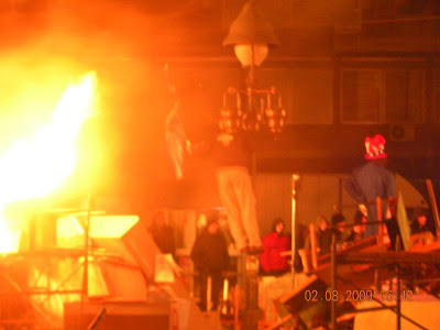 As we left “?” to find a bite to eat, we happened upon a Serbian film crew making a movie which appeared vaguely anti American. There was a character dressed as Uncle Sam on huge stilts, while another character held an American flag dangerously close to a large open flame all against a backdrop reminiscent of Les Miserable. I stopped to take a few photos, but was quickly ushered on by my cohorts. After that we went to a really cool bar called “KGB” which featured an extremely attractive waitress (that looked like Shakira) and Soviet era posters on the walls as art. Here I felt really comfortable, as the people inside looked cool and relaxed and did not stare at us at all! We had a few drinks and chatted a bit, and eventually headed back to my place for much needed sleep.